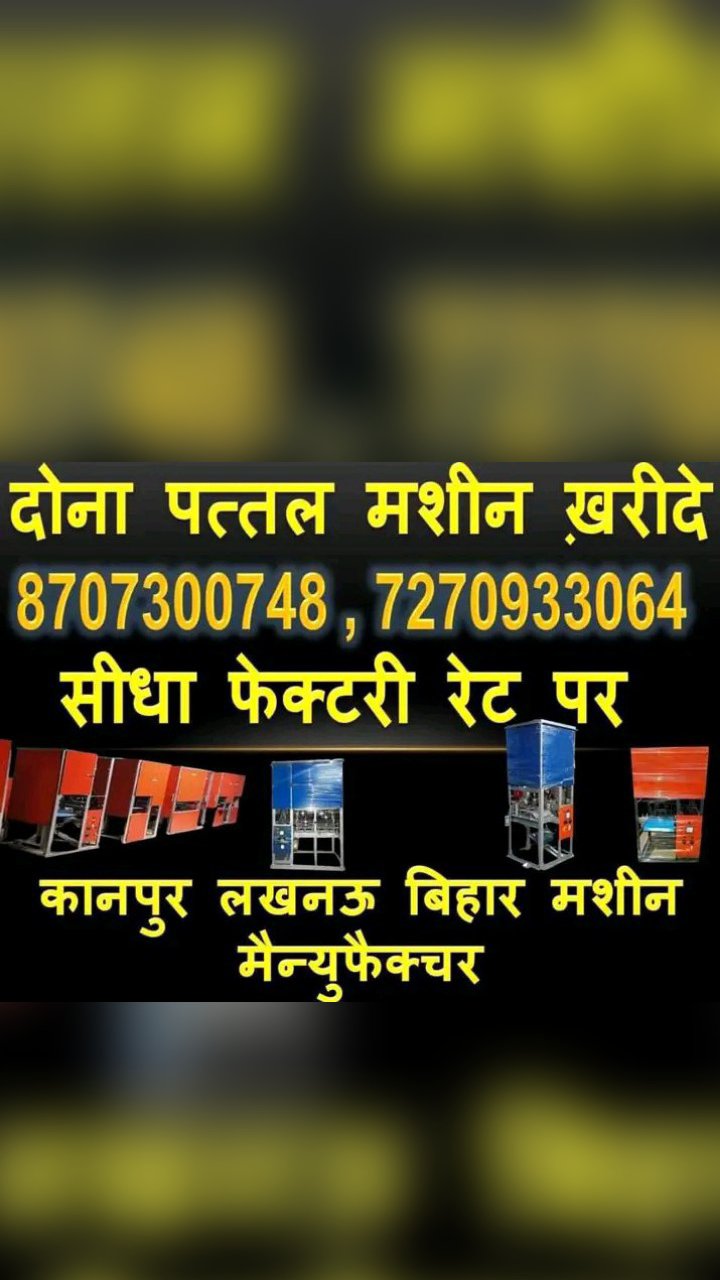 हमारे यहाँ सभी प्रकार की दोना बनाने वाली मशीन दोना पत्तल बनाने वाली मशीन हइड्रोलिक दोना पत्तल मशीन बनाई जाती है यह सभी मशीन हम अपनी फैक्ट्री में बनाकर आप को फैक्ट्री के थोक दाम पर देते है जिससे आपको कम से कम कीमत में मशीन मिल सके अगर आपको हमारी फैक्ट्री आकर अधिक जानकारी लेनी हो तो आप